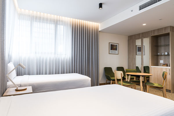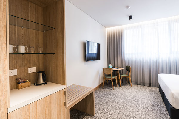 Conveniently located within the vibrant business district of North Sydney, Anderledy is ideal for the commercial and business traveller with large well-appointed rooms that include the convenience of a table or desk.